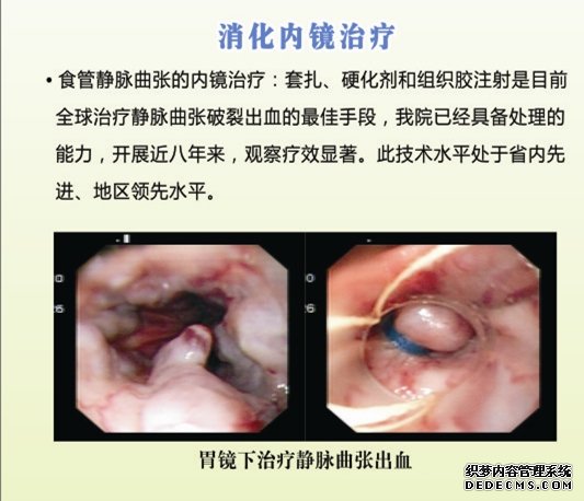 消化內科主要診治食管、胃、腸、肝、膽、胰等消化器官常見疾病及消化系統急危重癥,如:胃食管反流病、食管癌、急慢性胃炎、功能性消化不良、消化性潰瘍病、胃癌、腸易激綜合征、便秘、炎癥性腸病、缺血性結腸炎、結腸癌、腸結核及結核性腹膜炎、急慢性胰腺炎、胰腺癌、肝硬化、食管胃底靜脈曲張出血、肝性腦病、肝腎綜合征、原發性肝癌、自身免疫性肝病、膽汁淤積性肝硬化,各種原因所致的消化道大出血等。對于各種原因所致的消化道大出血,應用藥物治療及內鏡下微創止血技術治療,如食管胃底靜脈曲張的套扎、硬化劑注射、血管介入栓塞止血等。消化內科還設有完善的內鏡中心,擁有一流的設備,如:自動洗腸機、電子胃鏡、腸鏡、十二指腸鏡、擴張氣囊等,率先開展了無痛胃鏡、腸鏡檢查技術。